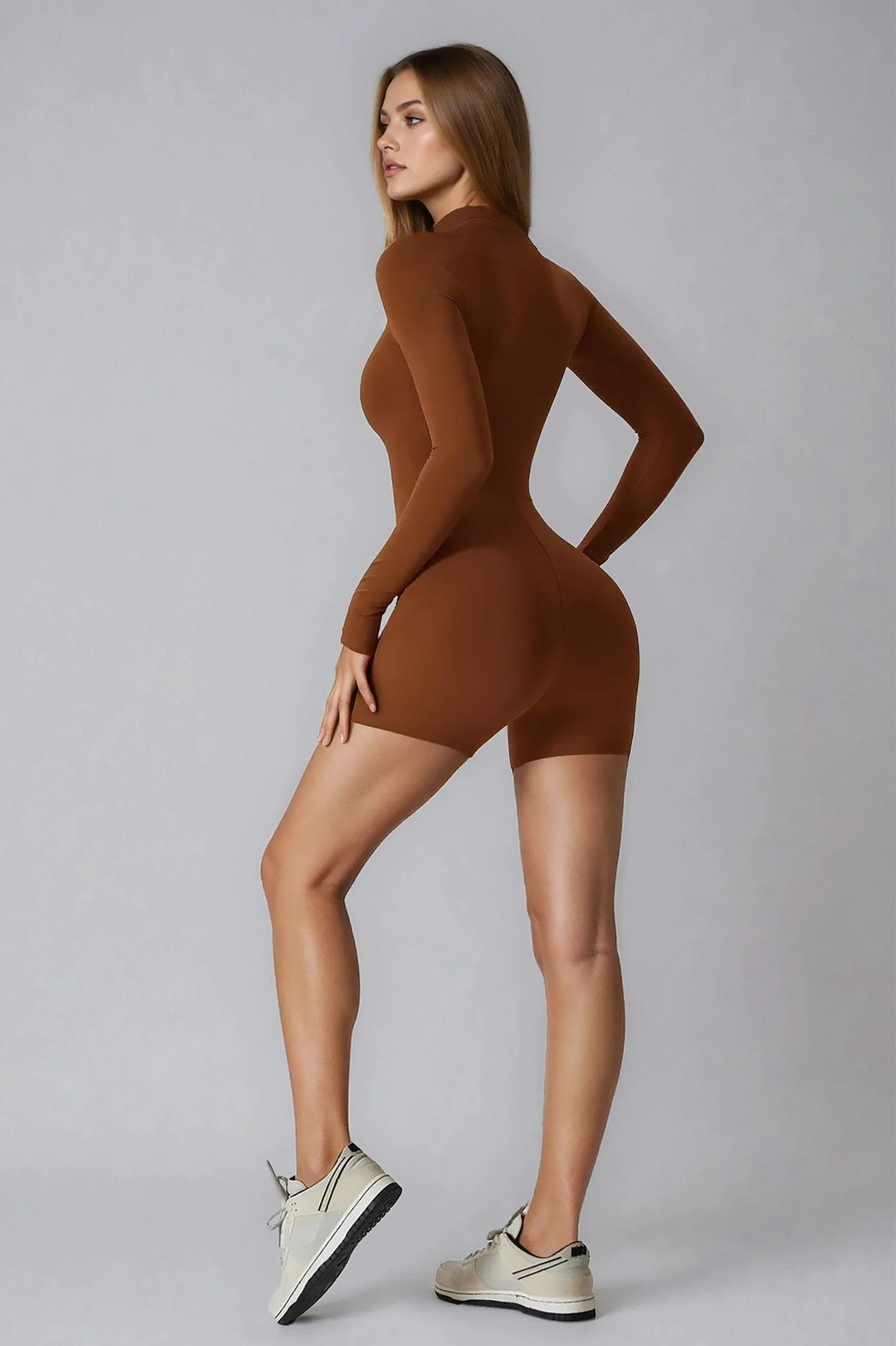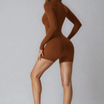 Romper STEADY z długim rękawem — bo najlepsze rzeczy w życiu nie wymagają komplikacji. Wysoki golf z zamkiem, przylegający krój i miękki materiał, który daje pełną swobodę ruchu. Załóż i zapomnij o reszcie. Trening, miasto, codzienny bieg — jesteś gotowa.