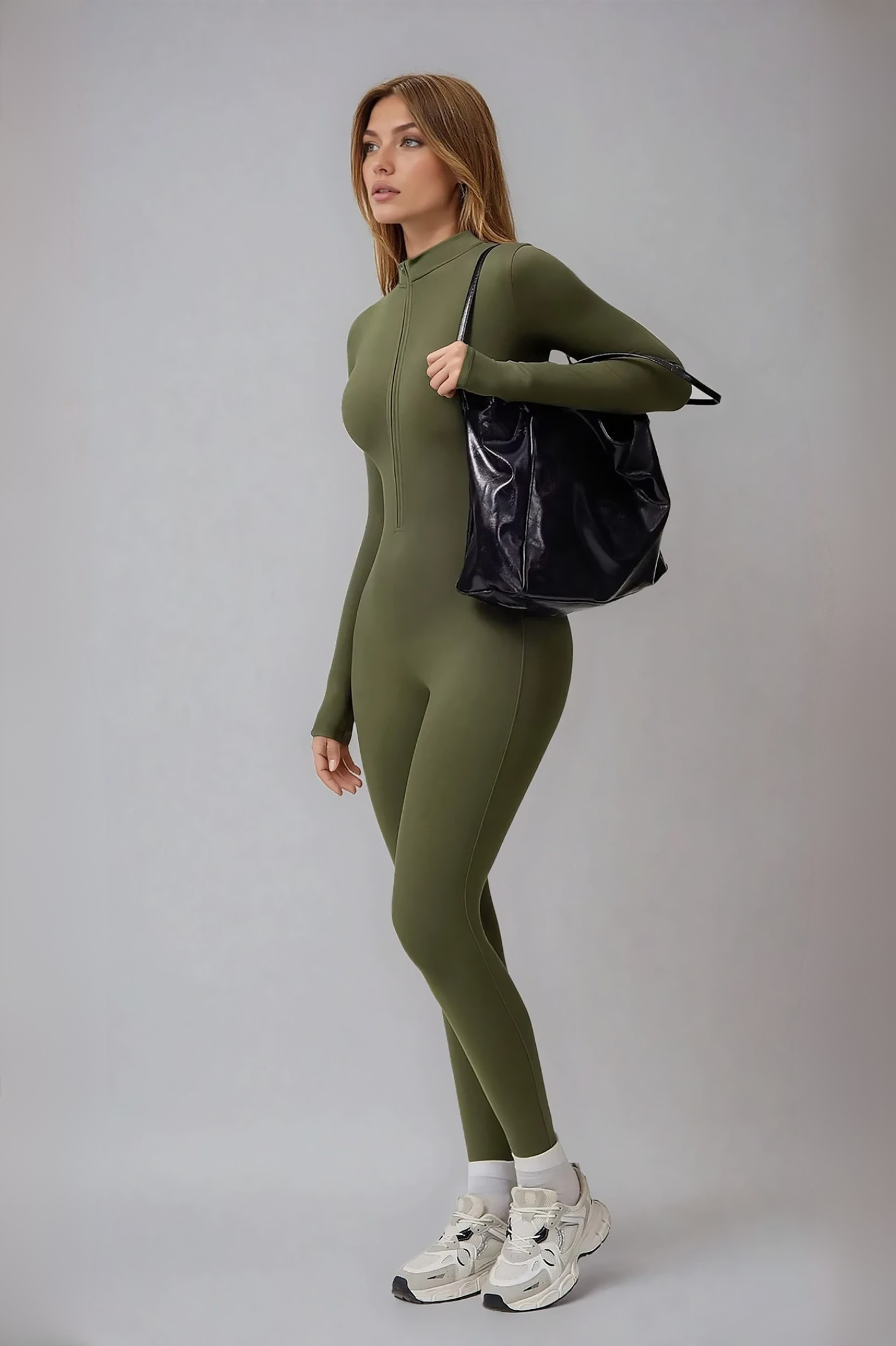 - Przylegający krój, długi rękaw