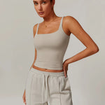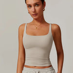 Top ROOT z kwadratowym dekoltem, cienkimi ramiączkami i delikatnym wycięciem U na plecach. Bezszwowa konstrukcja, wbudowany stanik z wyjmowanymi wkładkami i materiał, który jest tak miękki, że nie chcesz go zdejmować. Od jogi po siłownię, od studia po ulicę — ROOT to fundament Twojej garderoby sportowej.